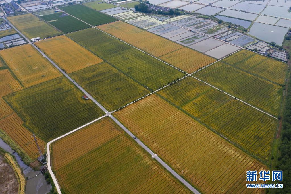初夏時(shí)節(jié),浙江省湖州市吳興區(qū)東林鎮(zhèn)萬(wàn)畝田野里的金黃的小麥、綠色的桑葉、彩色的花海還有白鷺等野生鳥(niǎo)類等構(gòu)成了一幅五彩田園的美麗景色。