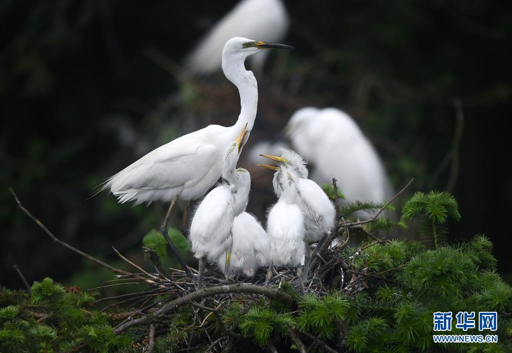 近期,在位于鄱陽(yáng)湖畔的江西省南昌市新建區(qū)象山森林公園內(nèi),已安家筑巢的鷺鳥進(jìn)入孵化哺育旺季。象山森林公園有著“鷺鳥王國(guó)”的美譽(yù),每年都會(huì)吸引白鷺、蒼鷺、夜鷺等種類的鷺鳥飛抵棲息和繁衍后代。