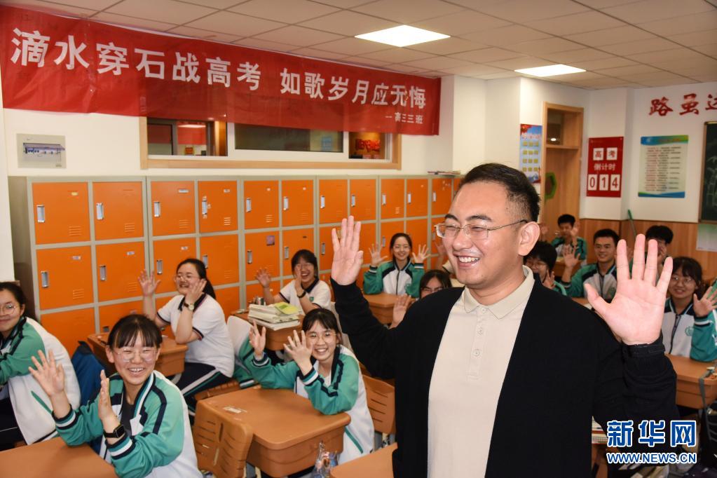 5月23日,在青島通濟實驗學校,高三學生在老師的帶領下一起做減壓操。