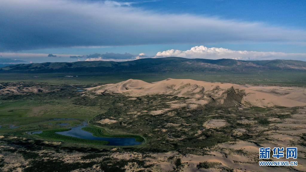 這是2020年7月28日拍攝的青海湖沙島一隅(無人機照片)。