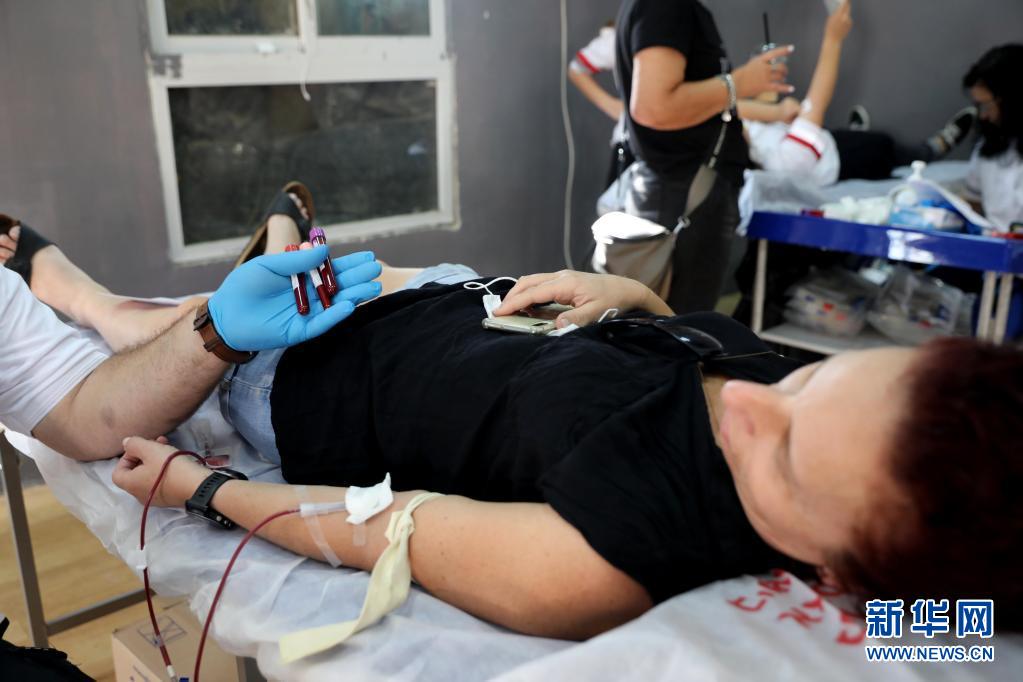 6月14日,志愿者在以色列中部城市莫迪因獻(xiàn)血。新華社發(fā)(吉爾·科恩·馬根攝)