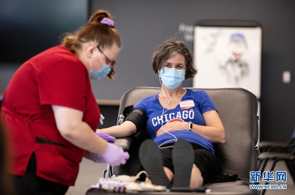 這是6月14日在美國芝加哥的大芝加哥地區紅十字會一獻血站內拍攝的獻血志愿者。新華社發(喬爾·萊納攝)