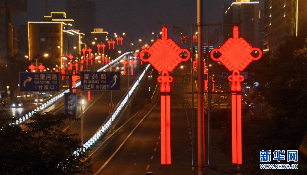 彩燈裝扮的北京市復興路(6月28日攝)。