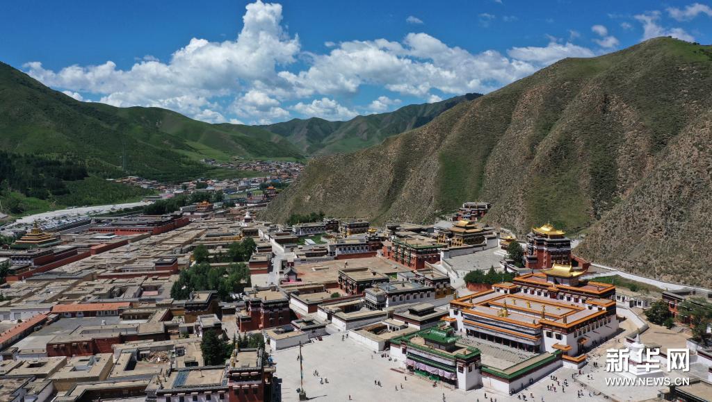 這是7月12日拍攝的拉卜楞寺建筑群(無人機照片)。新華社記者 杜哲宇 攝