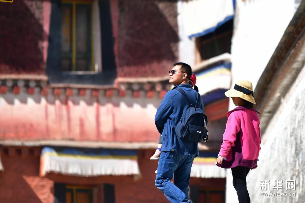 7月12日,游客在拉卜楞寺參觀。新華社記者 陳斌 攝