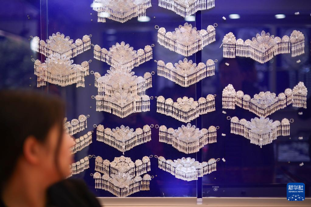 4月8日,顾客在贵州省黄平县新州镇文星社区一家银饰店选购银饰。