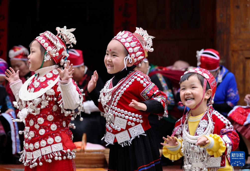 4月8日,盛装的小朋友在贵州省黄平县谷陇镇大寨村玩耍。