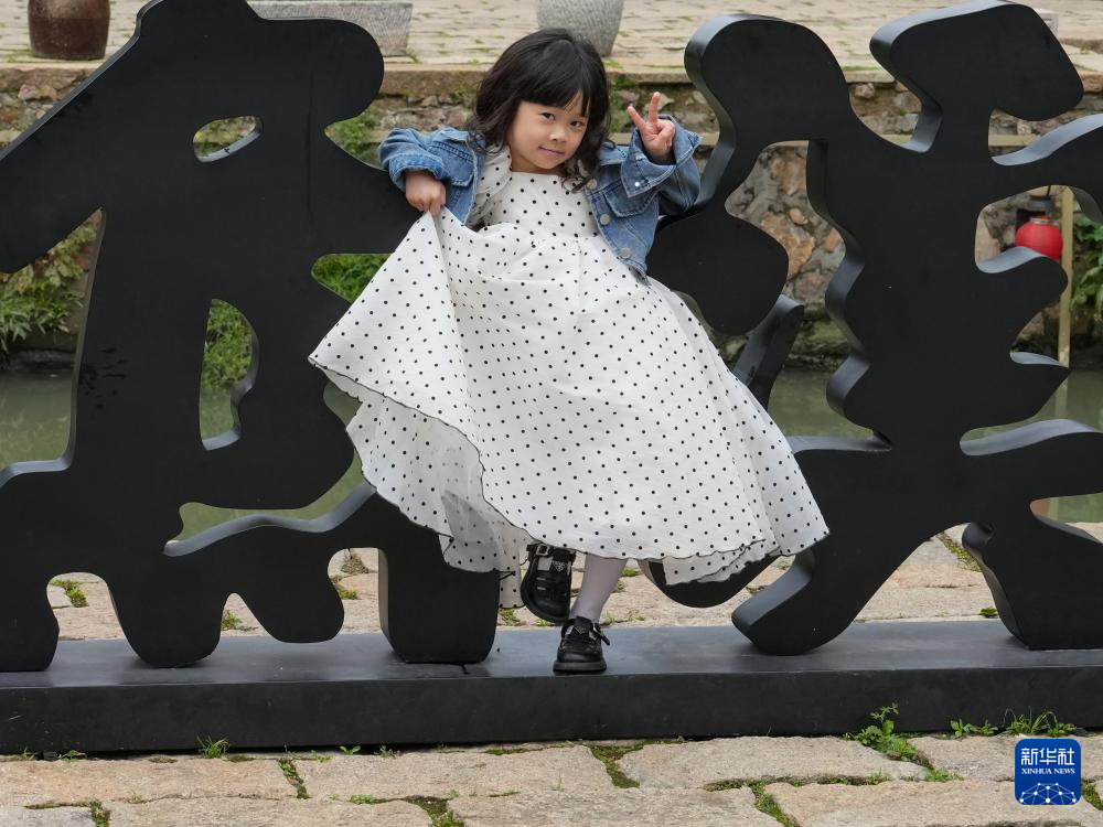 4月21日,小游客在常州焦溪古镇休闲游玩。
