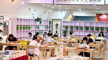 7月10日,来自香港的青少年在南京中国科举博物馆内参观。