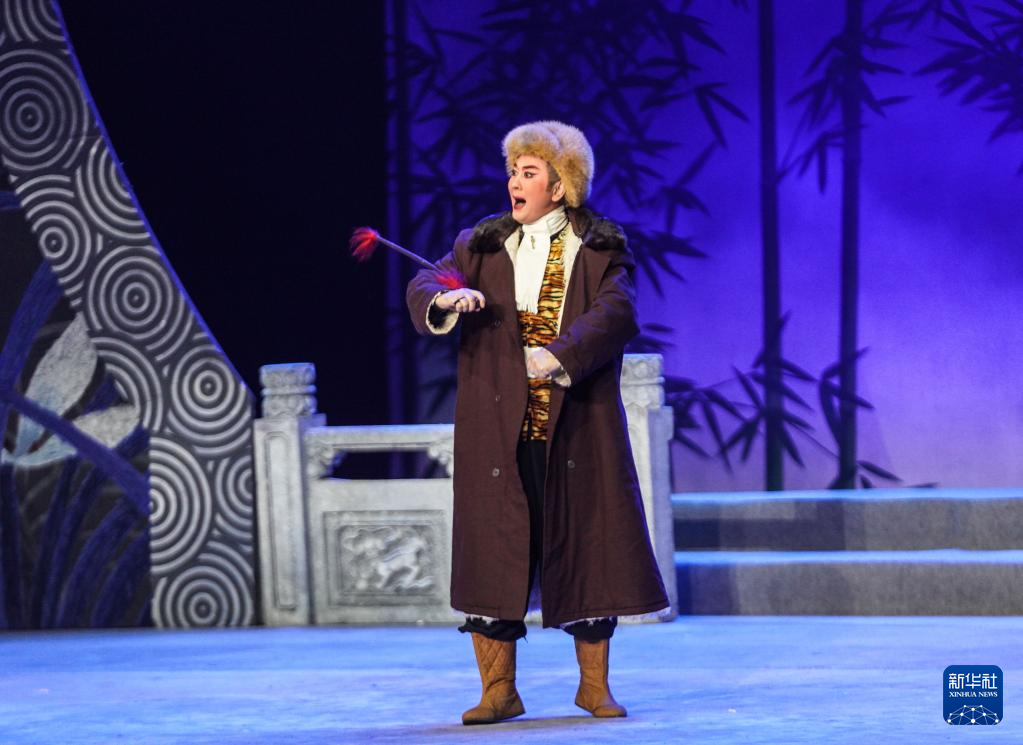 8月29日,京剧演员在吉林市人民大剧院表演京剧《战洪洲》选段。