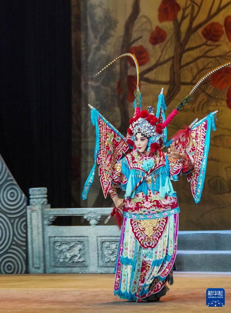 8月29日,京剧演员在吉林市人民大剧院表演京剧《白蛇传》选段。
