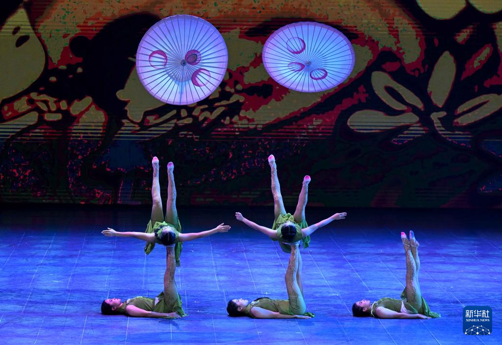 9月22日,演员在河北省石家庄市长安区天缘剧场表演杂技魔术剧《恰同学少年》。