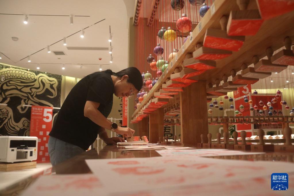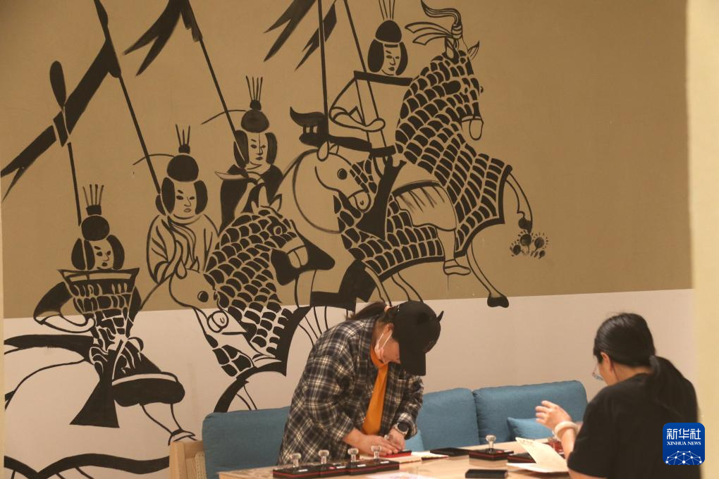 9月27日,在敦煌文化时尚新地标——敦煌1900,游客盖敦煌文化元素印章。