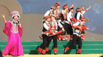 10月28日,少数民族演员在展演现场表演节目。