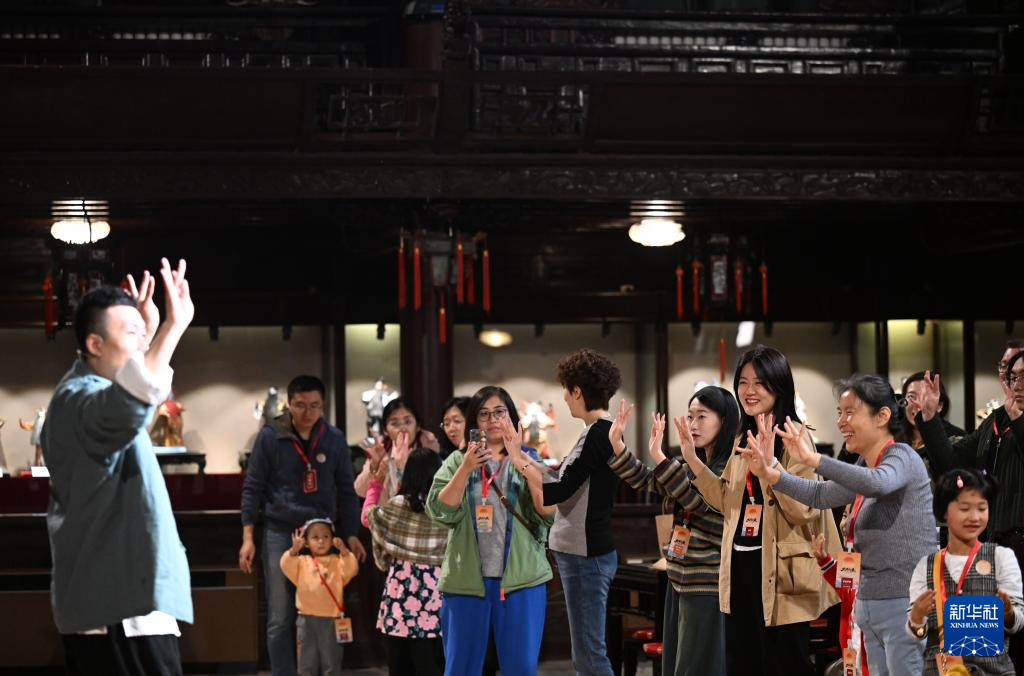 11月2日,观众在演员指导下体验戏曲动作。