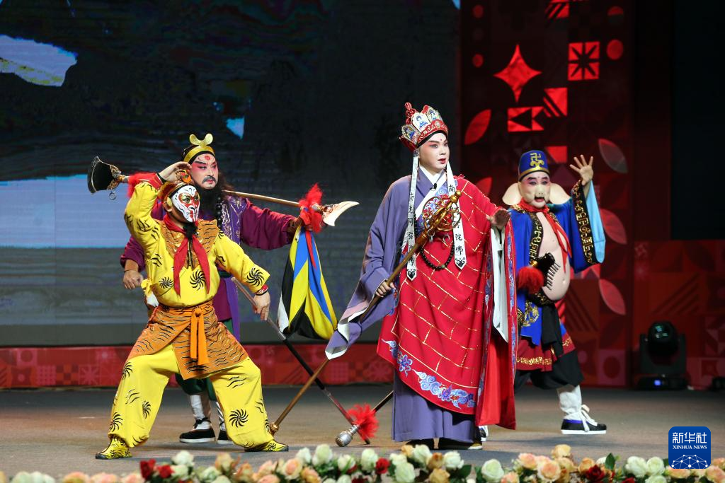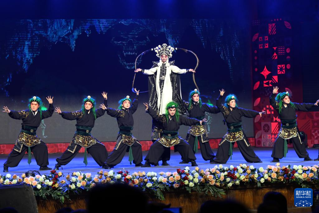 2025达卡“欢乐春节”婺剧专场演出21日在孟加拉国艺术院国家剧场举行,来自浙江婺剧艺术研究院的演员为观众带来《三打白骨精》等婺剧经典剧目。