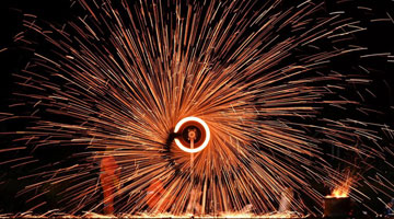 1月31日,游客在山东省临沂市平邑县蒙山龟蒙景区新春庙会上观看舞狮表演。