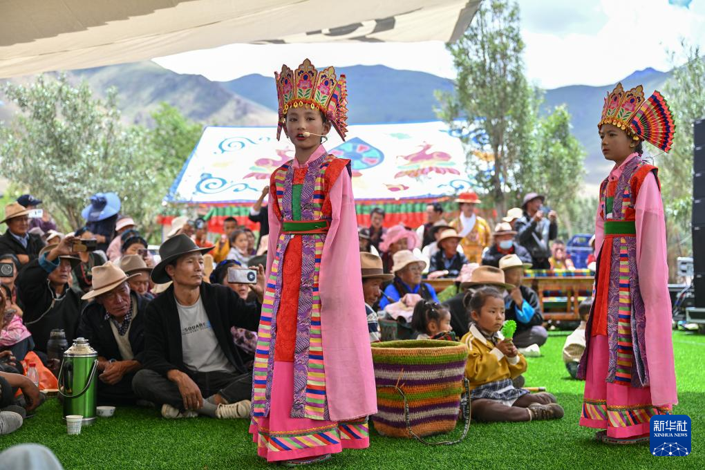 7月16日,果拉村少儿藏戏队的小演员在南木林县非遗公园内表演湘巴藏戏。