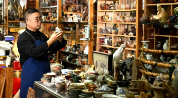 10月10日,黄一格在家中查看一把马骨胡。