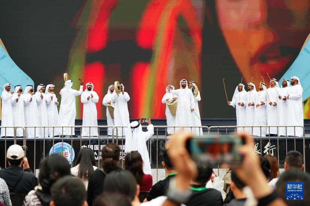 11月8日,来自阿联酋的演员在第八届进博会中央广场表演舞蹈《阿亚拉舞》。