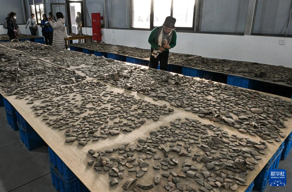 这是井头山遗址文物库房内展示的第一期发掘出土的大量陶片(12月15日摄)。