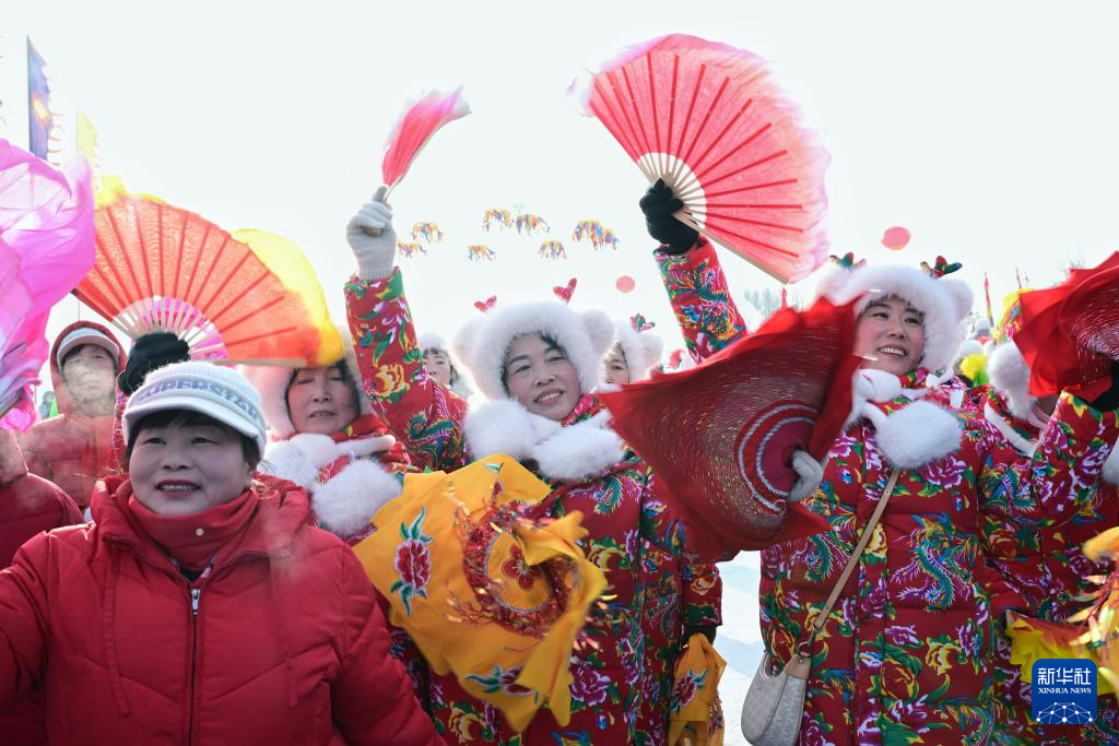 1月10日,黑龙江省肇东市举行大似海冬捕渔猎文化节,来自天南地北的游客在冬捕活动现场观看冰窟捕鱼,欣赏民俗歌舞,尽享北国风情。