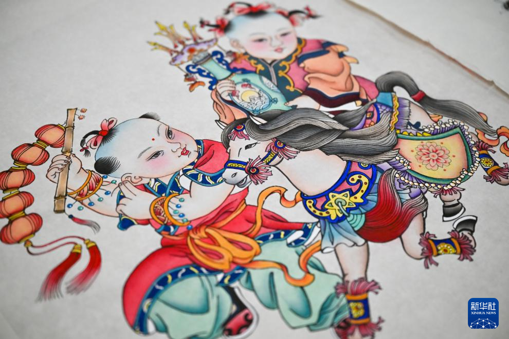 这是2月4日在天津杨柳青画社拍摄的多幅以马为主题的年画作品。