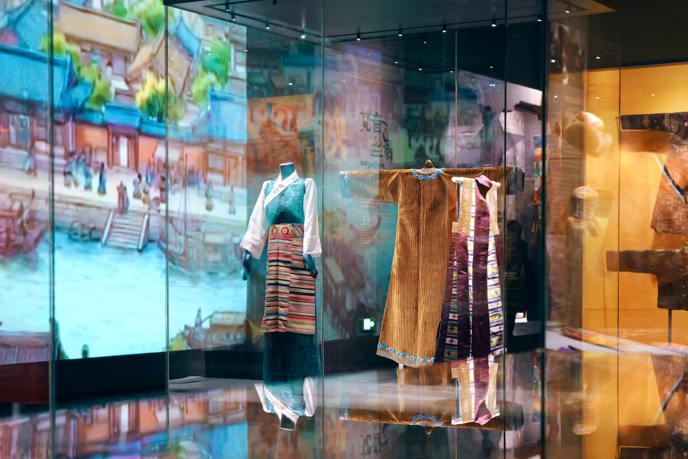这是在西藏博物馆“丝绸文化展”中展出的传统服饰。新华社记者 周昱龙 摄