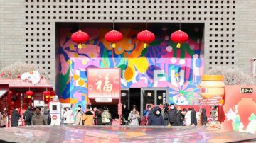 2月11日,市民和游客在四川省泸州市江阳区大梯步文化广场赏灯游玩。