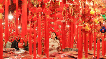 2月11日,市民在甘肃省定西市安定区新时代广场观赏传统手工花灯展览。