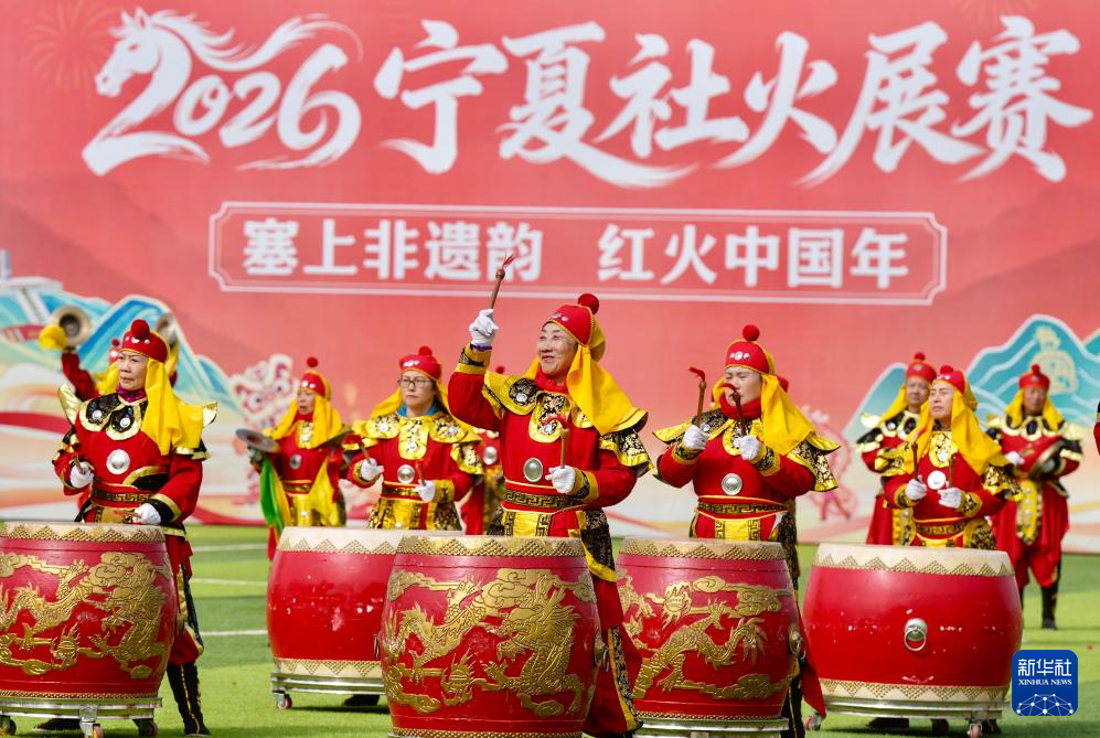3月1日,2026年“塞上非遗韵·红火中国年”宁夏社火展赛决赛在宁夏银川市览山公园启幕,来自全区的20支社火队伍同台竞技,为市民献上一场精彩的社火大展演。