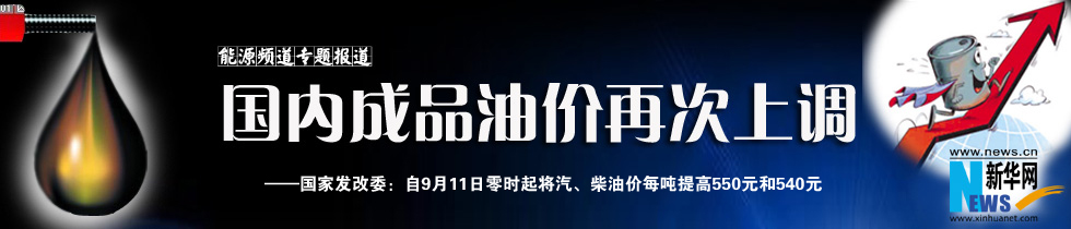 10日,國(guó)家發(fā)展改革委發(fā)出通知,決定自9月11日零時(shí)起將汽、柴油價(jià)格每噸分別提高550元和540元,折算到90號(hào)汽油和0號(hào)柴油(全國(guó)平均)每升零售價(jià)格分別提高0.41元和0.46元。 [詳細(xì)]