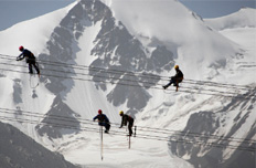 一架帶紅色卡-32型直升機順利吊起1.5噸鐵塔材料,穩穩放在由該架直升機吊裝的2.2噸重的鐵塔底座上 [詳細]