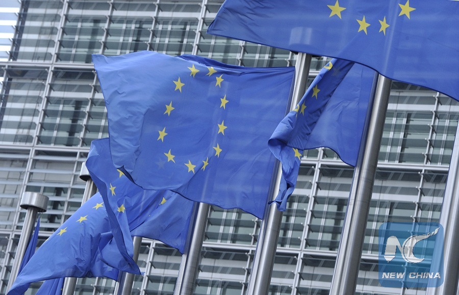 The European Union flags flutter in front of EU headquarters in Brussels, Belgium, on Oct. 12, 2012. (Xinhua/Wu Wei)