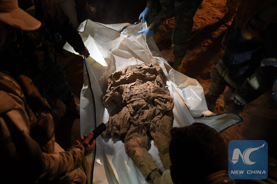 DAMASCUS, Dec. 30 (Xinhua) -- The Syrian authorities unearthed 115 bodies from a mass grave discovered in Syria's northern province of Raqqa, state news agency SANA reported.