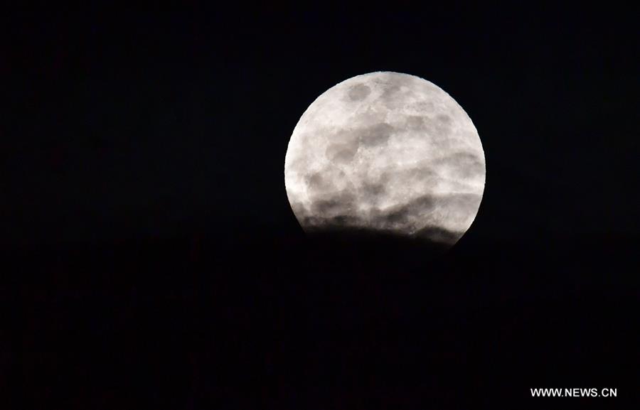 The moon is seen in the sky during a total lunar eclipse in Nanning, south China's Guangxi Zhuang Autonomous Region, Jan. 31, 2018. A red moon will grace the sky in most parts of China for over an hour during a total lunar eclipse on Wednesday night, according to the Beijing Planetarium. (Xinhua/Huang Xiaobang)