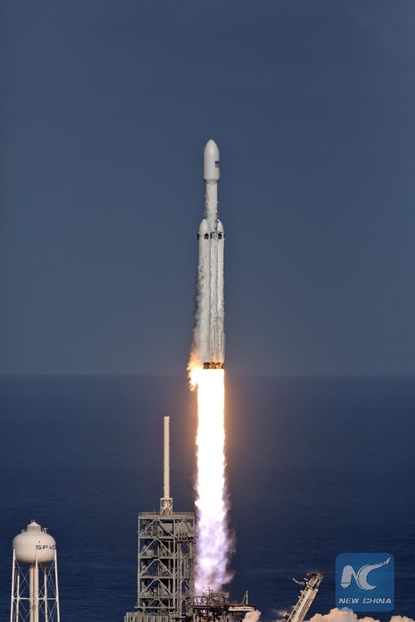 A SpaceX Falcon Heavy rocket lifts off from Florida's Kennedy Space Center, the United States, Feb. 6, 2018. (Xinhua/NASA)
