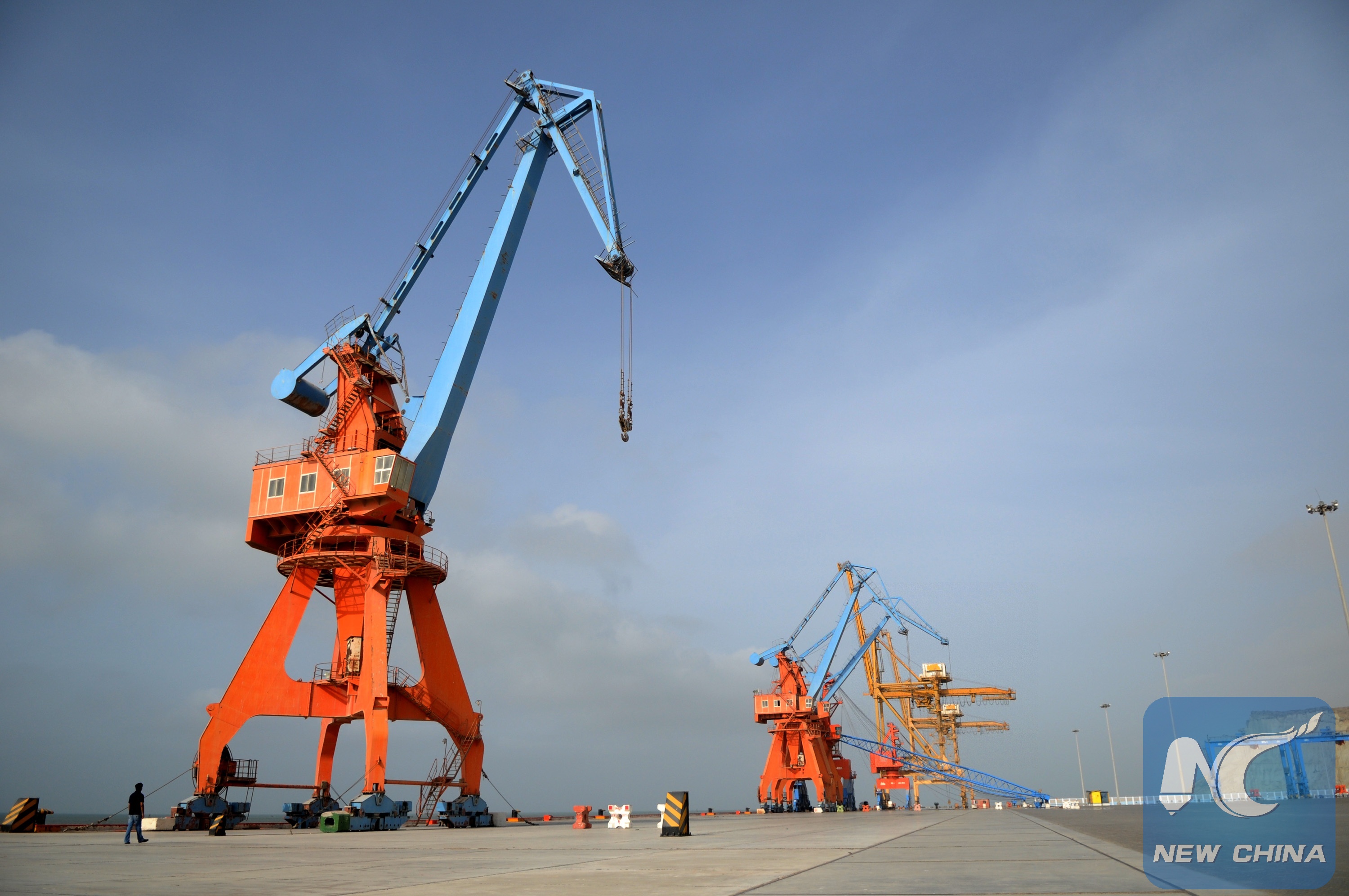 Photo taken on July 2, 2016, shows a view of Gwadar Port in southwest Pakistan. Gwadar Port is a warm-water, deep-sea port situated on the Arabian Sea in Balochistan province of Pakistan. (Xinhua/Ahmad Kamal)