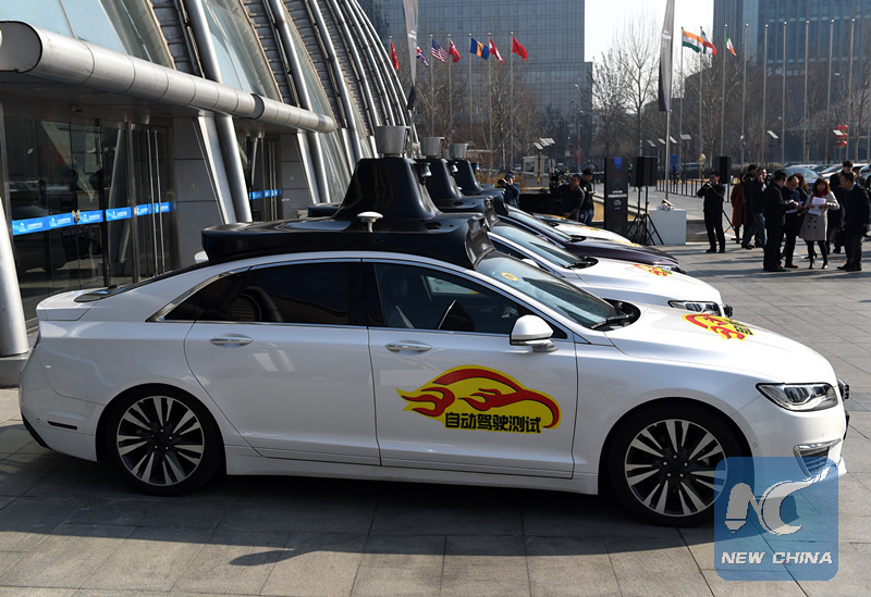 Self-driving cars ready for public road testing in Beijing. (Xinhua/Luo Xiaoguang)