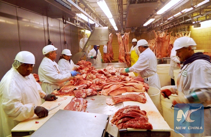File Photo: Workers cut pork at Park Packing, one of Chicago's few remaining slaughterhouses, in Chicago, Illinois July 18, 2015. (Xinhua/REUTERS)