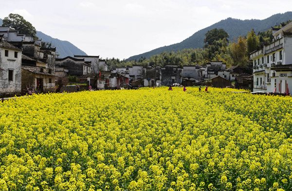 People view rapeseed flowers in Wuyuan, east China's Jiangxi Province, March 17, 2018. (Xinhua/Hu Dunhuang)