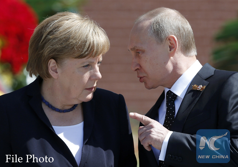MOSCOW, April 17 (Xinhua) -- Russian President Vladimir Putin and German Chancellor Angela Merkel said in a telephone conversation they were ready to assist in political and diplomatic efforts on Syria, including the Geneva and Astana peace talks, the Kremlin said Tuesday.