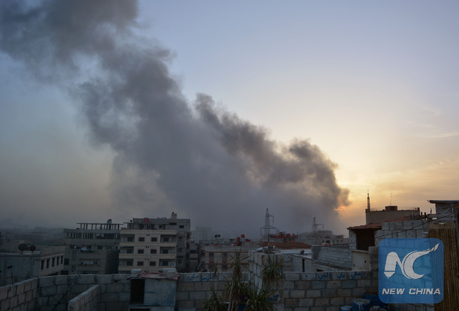 BAGHDAD, April 22 (Xinhua) -- Up to 36 Islamic State (IS) militants were killed in airstrikes by Iraqi air force targeting IS positions inside neighboring Syria, the Iraqi military said on Sunday.