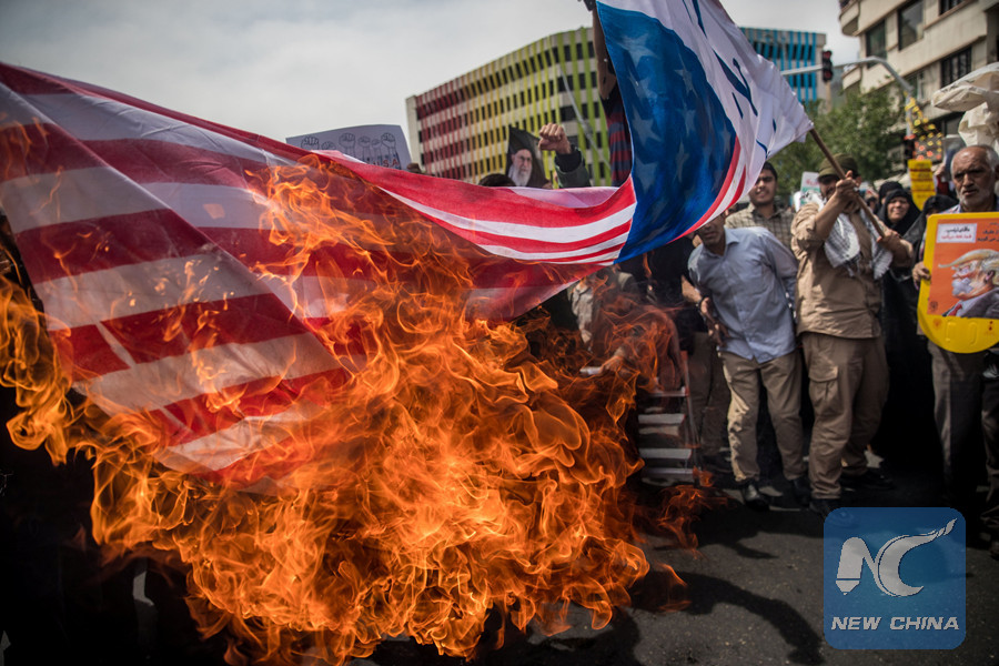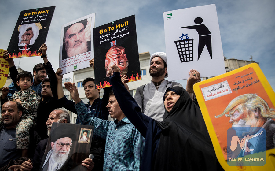 TEHRAN, May 11 (Xinhua) -- Iranians held rallies on Friday to condemn U.S. withdrawal from 2015 international nuclear deal.