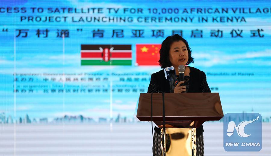 Photo shows Chinese Ambassador to Kenya Sun Baohong delivering a speech on June 7, 2018 in Nairobi during a ceremony to launch a digital TV project by Chinese company Startimes in Kenya. (Xinhua/Wang Teng)
