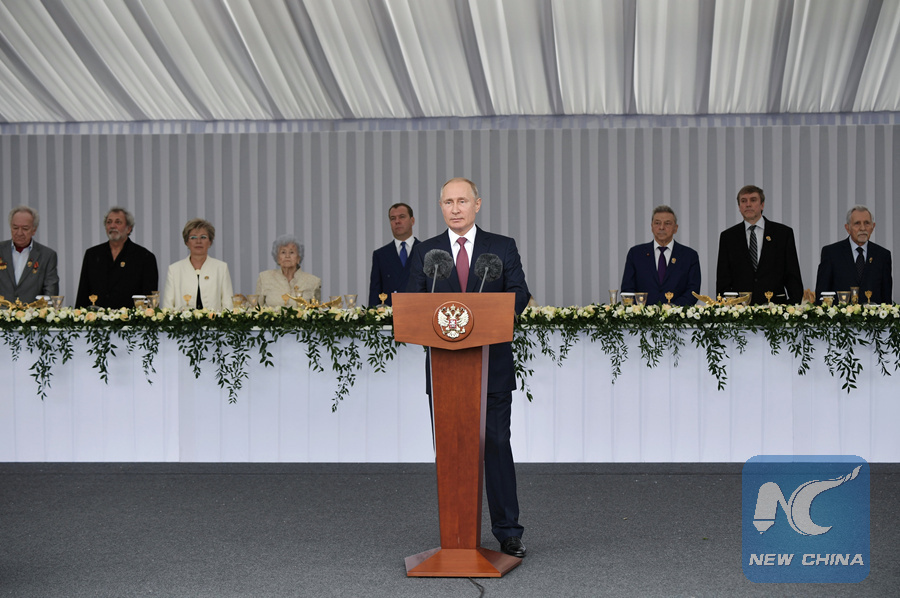 MOSCOW, June 12 (Xinhua) -- Russian President Vladimir Putin spent part of Tuesday handing out national accolades for outstanding achievement during Russia Day, the Kremlin said.