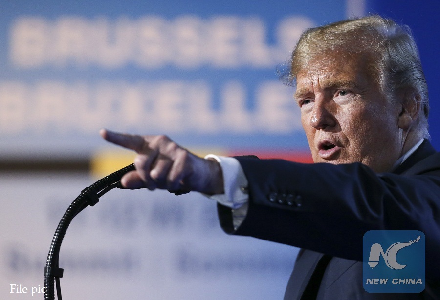 U.S. President Donald Trump speaks during a press conference on the second day of the NATO Summit in Brussels, Belgium, on July 12, 2018. (Xinhua/Ye Pingfan)