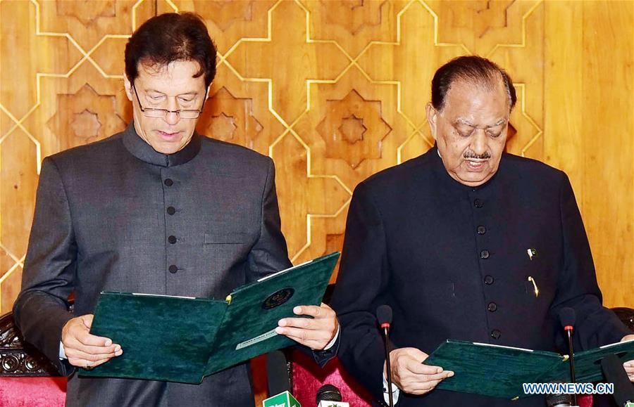 ISLAMABAD, Aug. 18 (Xinhua) -- Cricket star-turned-politician Imran Khan on Saturday morning took the oath of office of Pakistan's prime minister at the President House in the capital Islamabad.