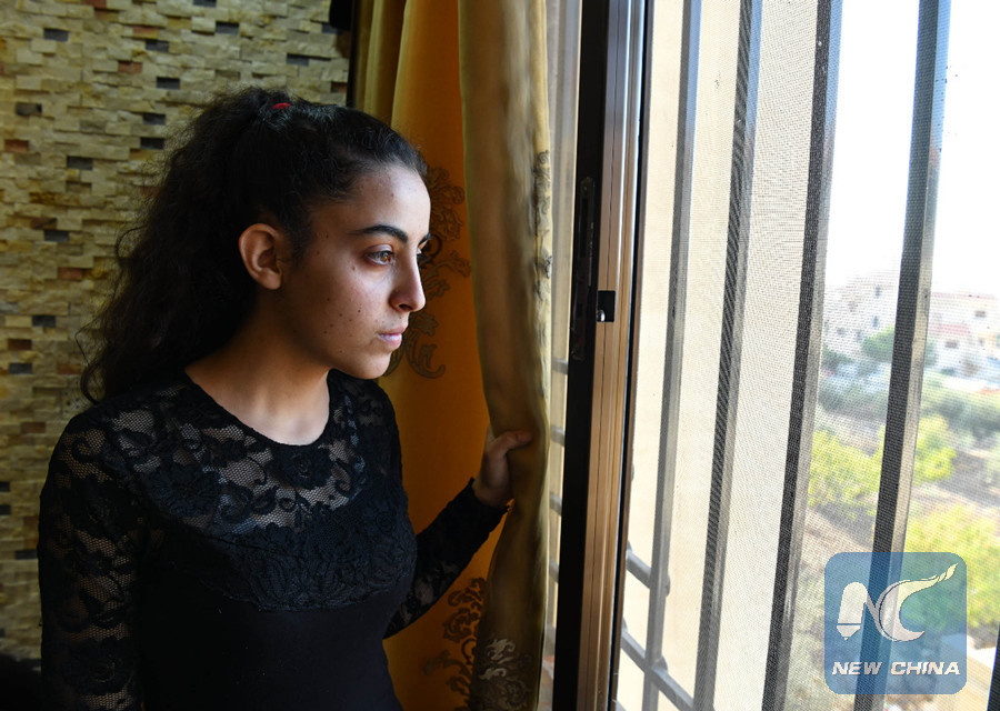 17-year-old Hanin Jibai, who had survived an attack by Islamic State militants on her village, looks out through the window of her house, in the village of Shibki in the eastern countryside of Sweida Province in southern Syria, on Aug. 16, 2018. (Xinhua/Ammar Safarjalani)
