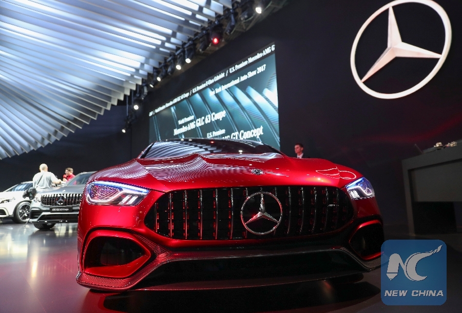 File Photo: A Mercedes-GT Concept vehicle is seen during the media preview of the New York International Auto Show in New York, the United States, April 12, 2017. (Xinhua/Wang Ying)